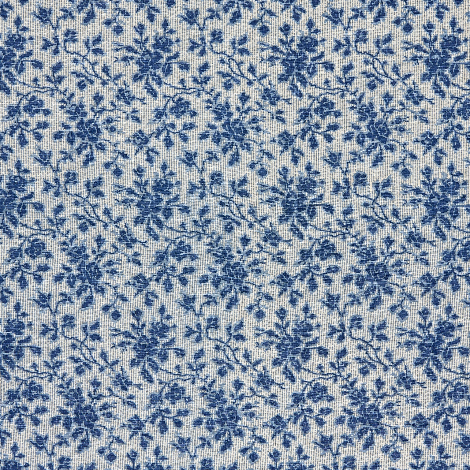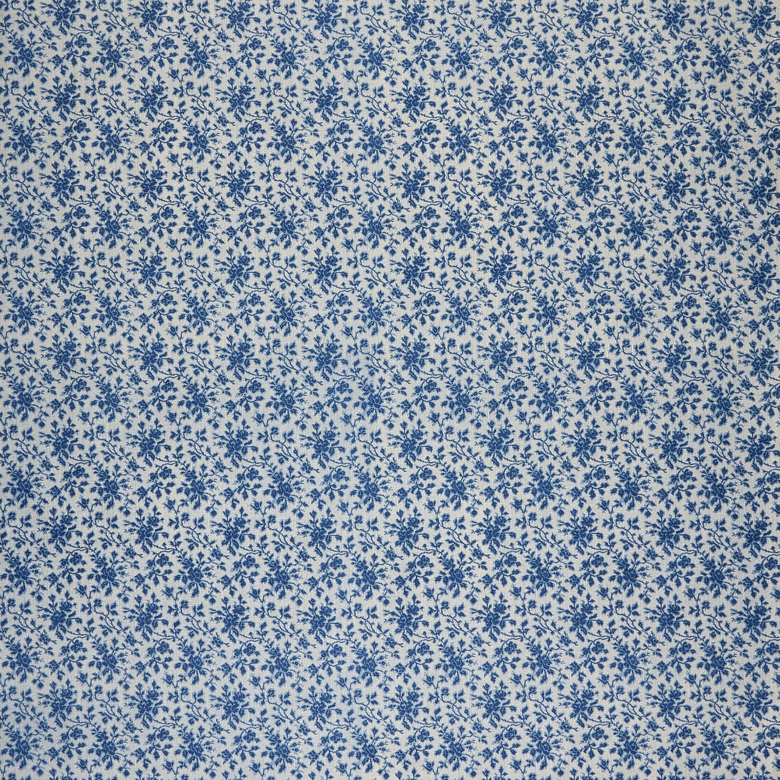 An all over indigo floral design with a subtle striped linen ground cloth.
