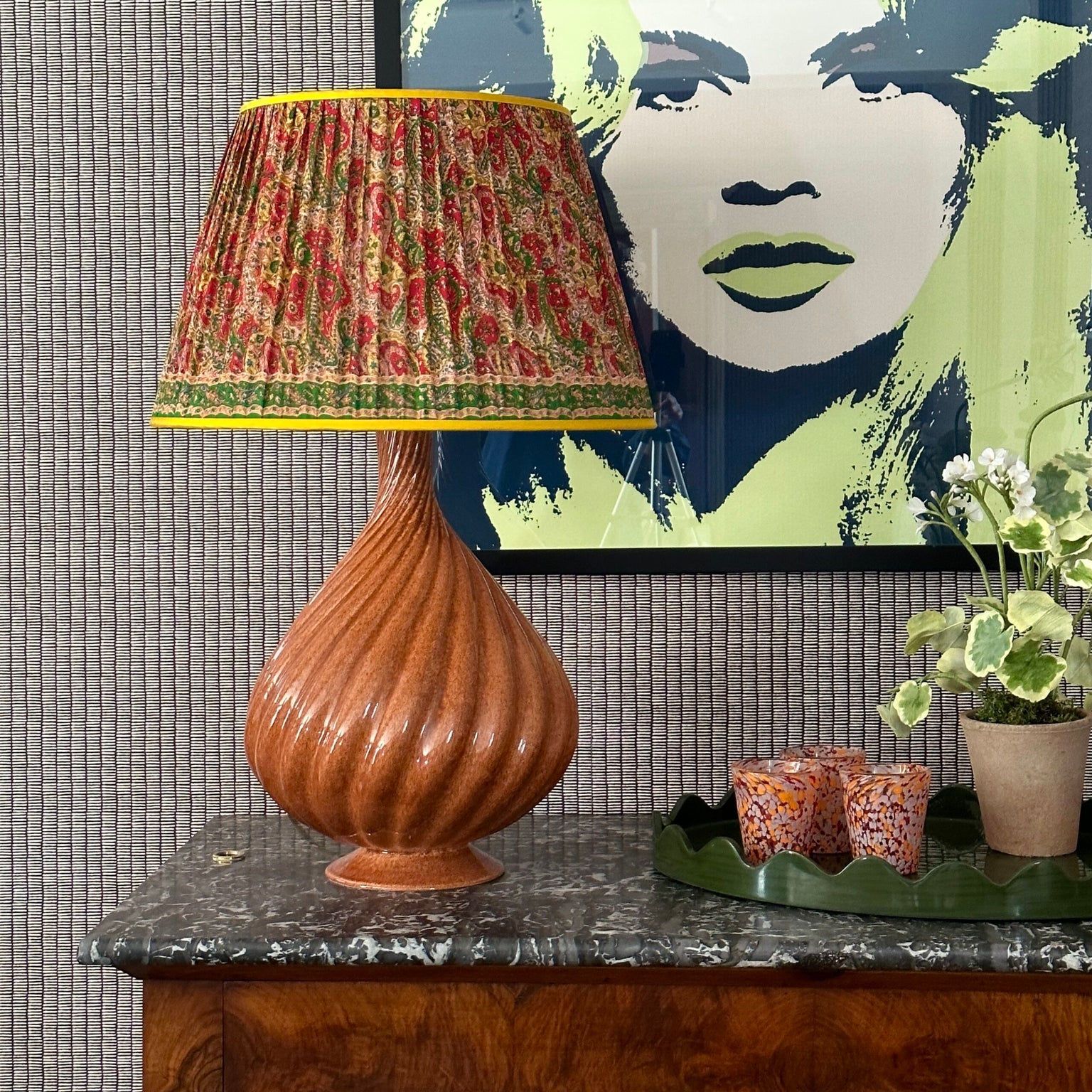 This generous, swirly lamp makes a strong statement and comes in Amber, Blue, Seaweed and Cream