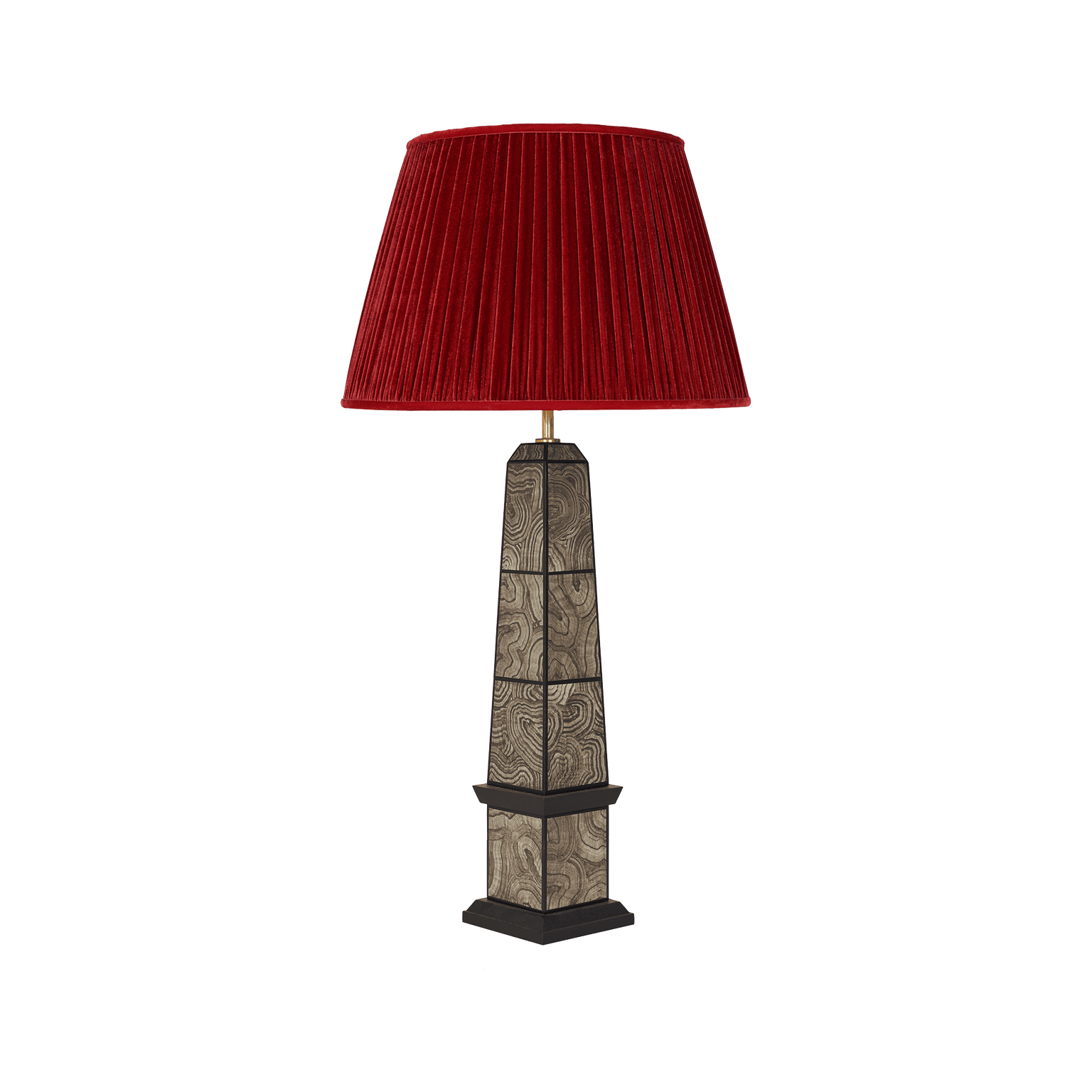 Our hand painted solid beech obelisk lamps are so smart and come in a number of different finishes and colours. They can be paired with plain gathered shades or for a real statement it could be paired with a matching shade in the same finish