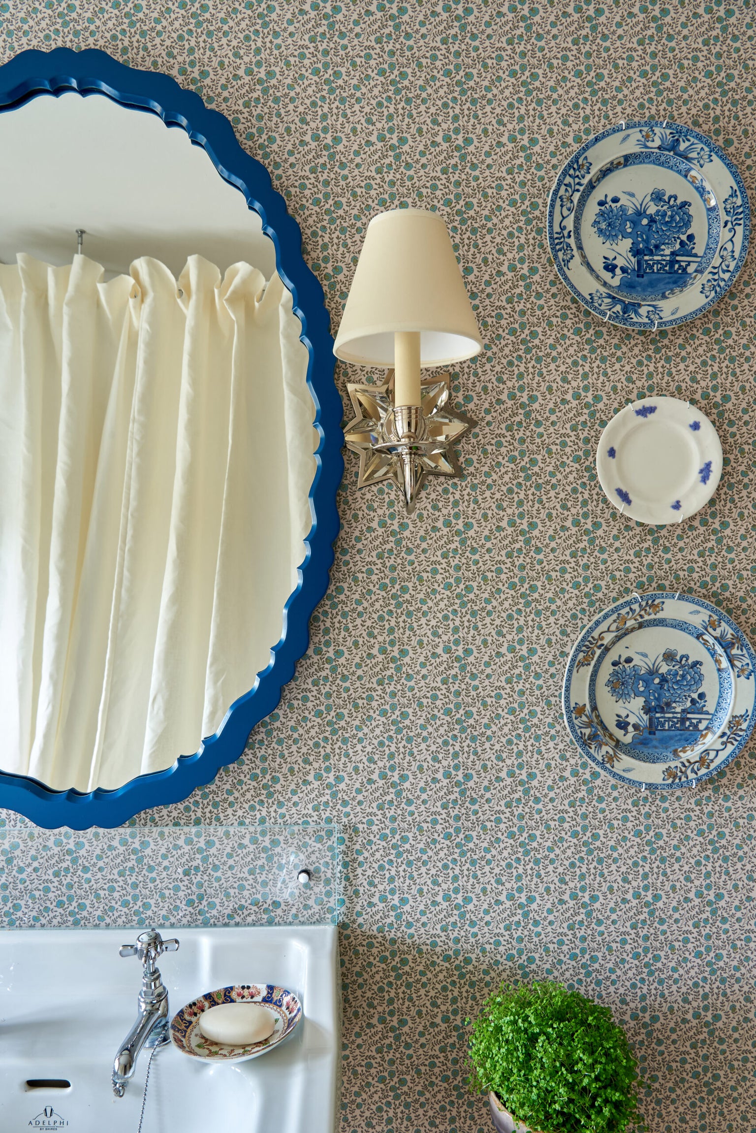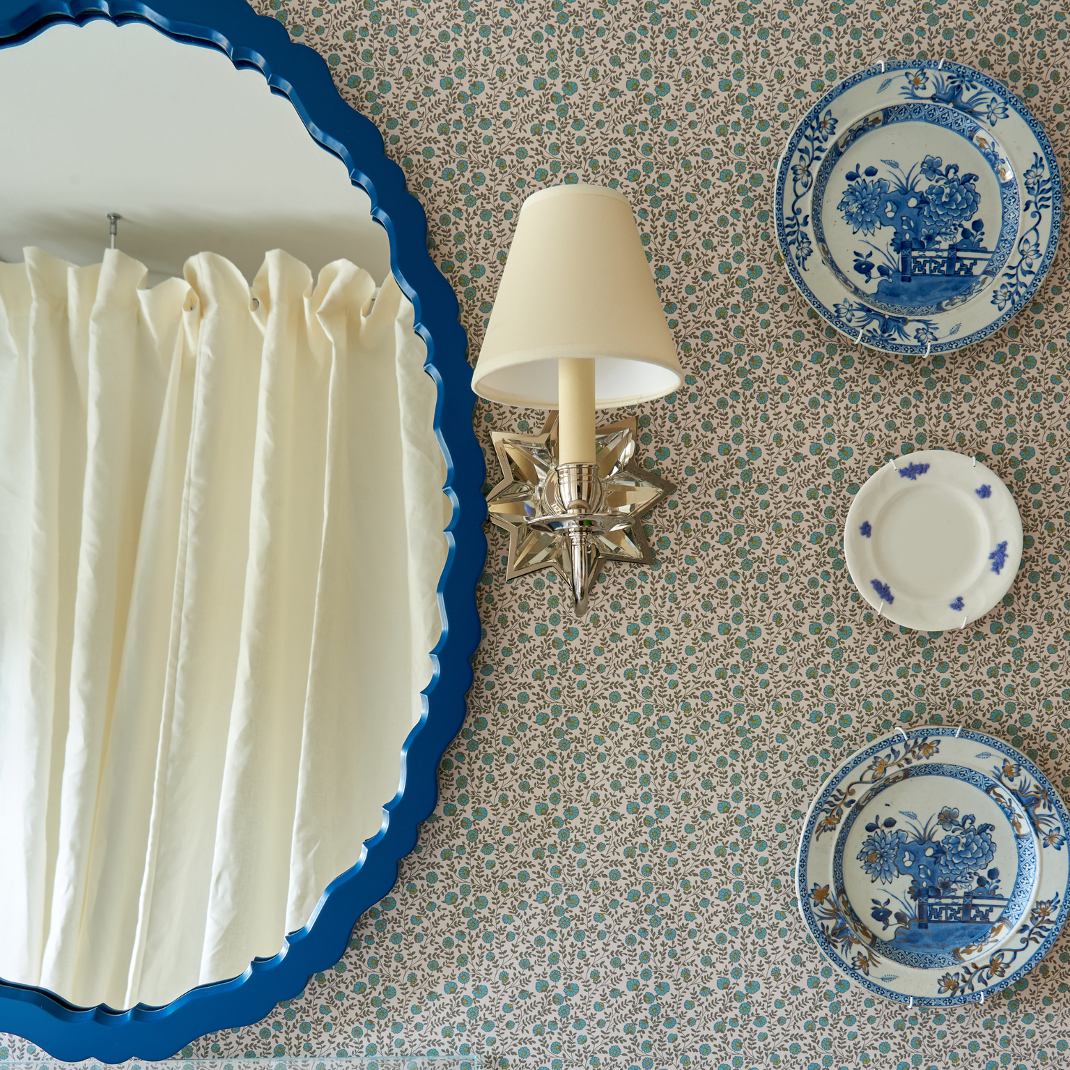 Inspired by the curves of an antique mahogany mirror we have given this mirror a modern twist, bringing it to life with our signature colourways. There is so much detail in every curve and point and the chamfered edges add a softness. Available in our standard colours and size it comes with plain glass but we can offer a bespoke option with antiqued glass.