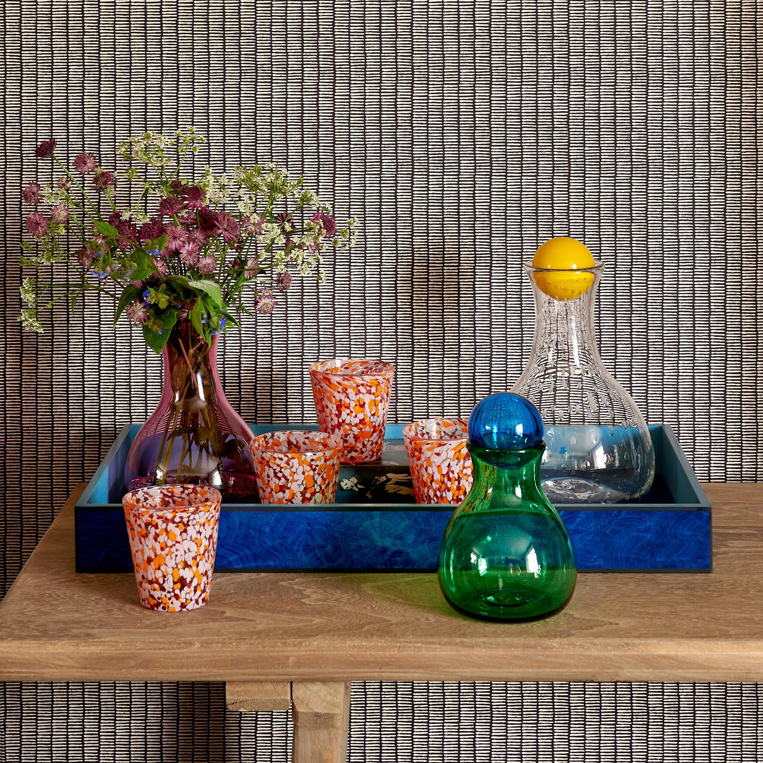 Fun glass tumblers with an orange splatter effect