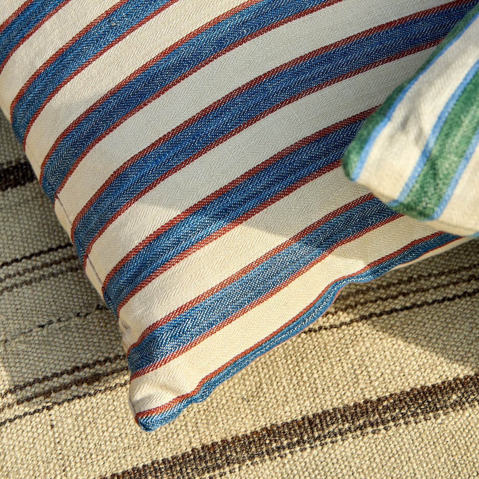 A fresh take on a ticking stripe. A cotton/linen mix with a wider bolder stripe.